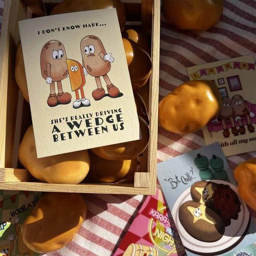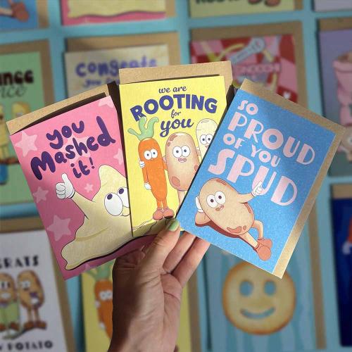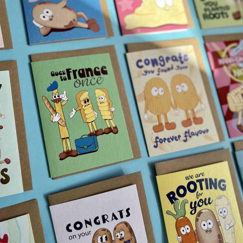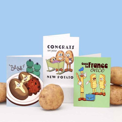 Each card is lovingly designed from my home studio and printed in the UK on FSC-certified stock, using recycled and recyclable materials wherever possible, because we should look after the earth our spuds come from.