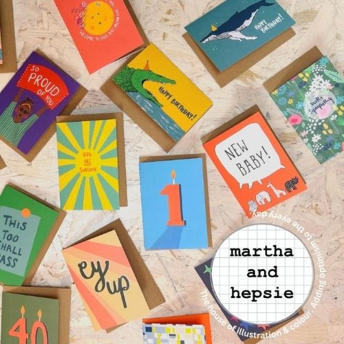 Established in 2011, Martha and Hepsie Ltd is an independent British brand bringing colour and joy to everyday life through beautifully illustrated greeting cards and gift wrap. Designed in Sheffield and proudly made in the UK, our collections feature original, characterful designs that celebrate personality, moments, and meaningful connections.